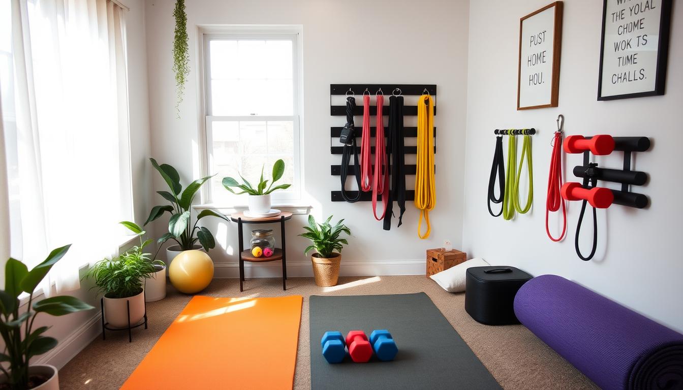 Using key items like resistance bands and adjustable dumbbells is smart. Also, using space-saving items like folding benches and small cardio machines is helpful. This way, you can have a gym that fits your needs without taking up too much space.