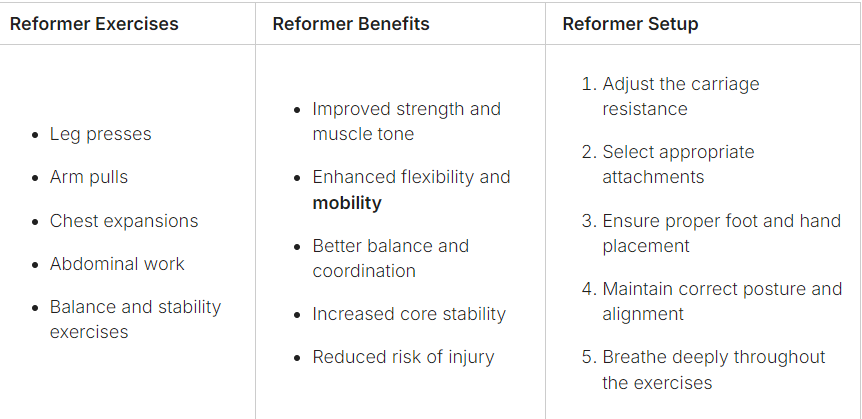 The Pilates reformer is key to Pilates workouts. It offers a challenging, full-body workout. It has a sliding carriage, springs, and attachments for various exercises.